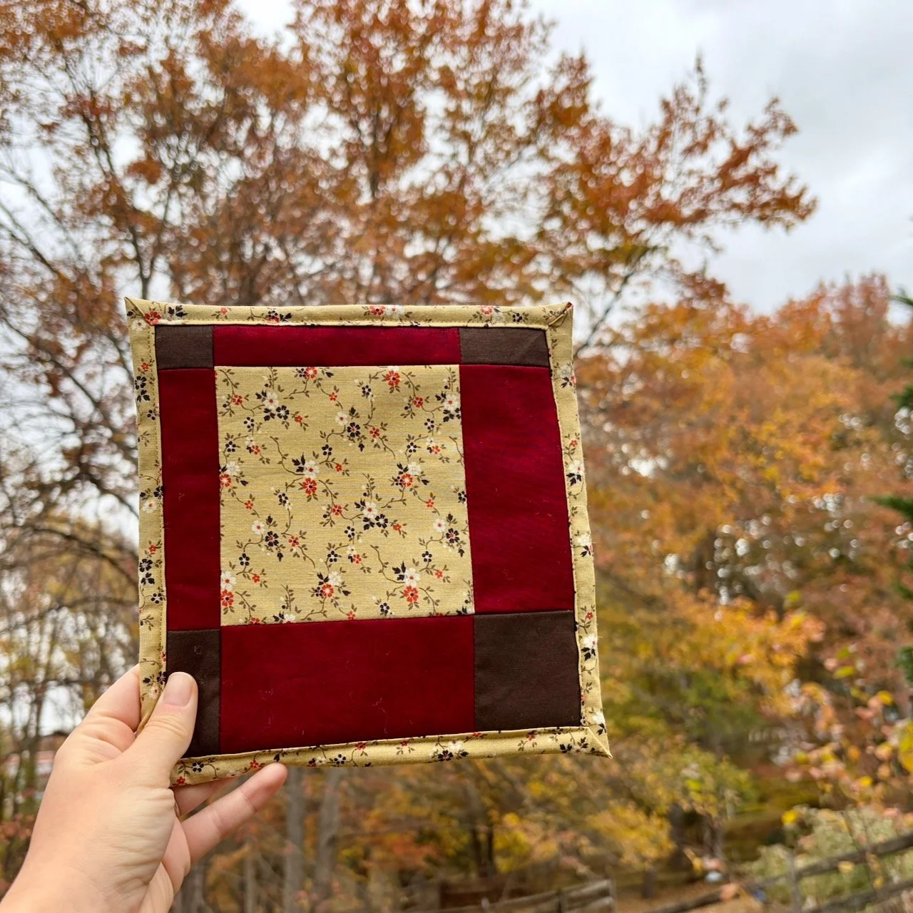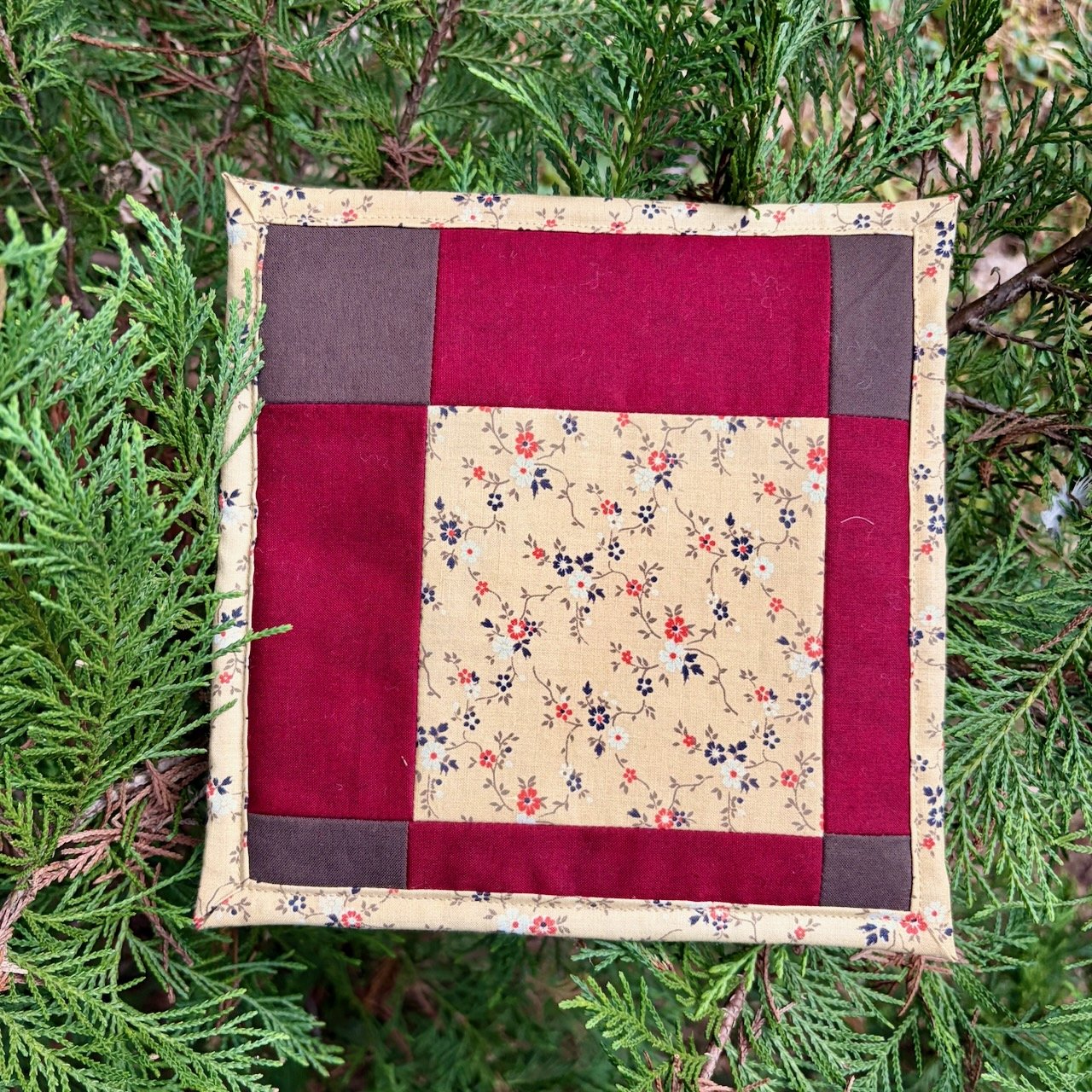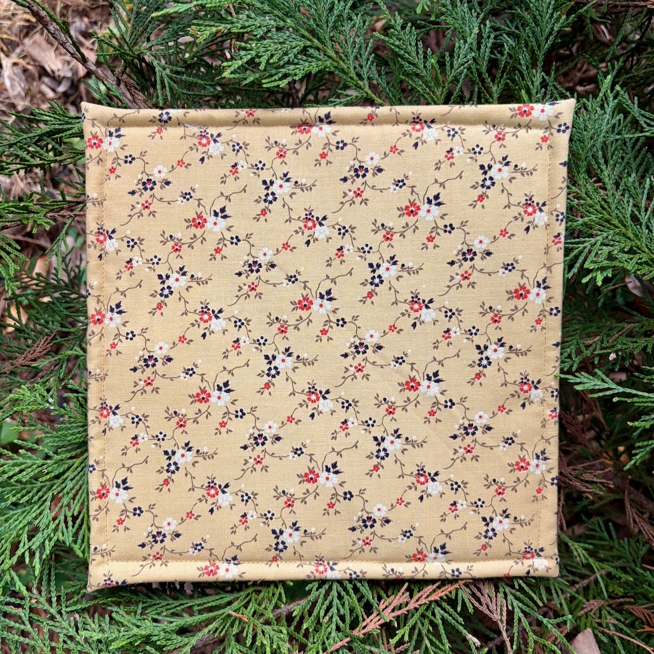 This one-of-a-kind trivet was lovingly crafted in my Maryland studio using traditional quilting techniques. When it's gone, it's gone - no two pieces are exactly alike.