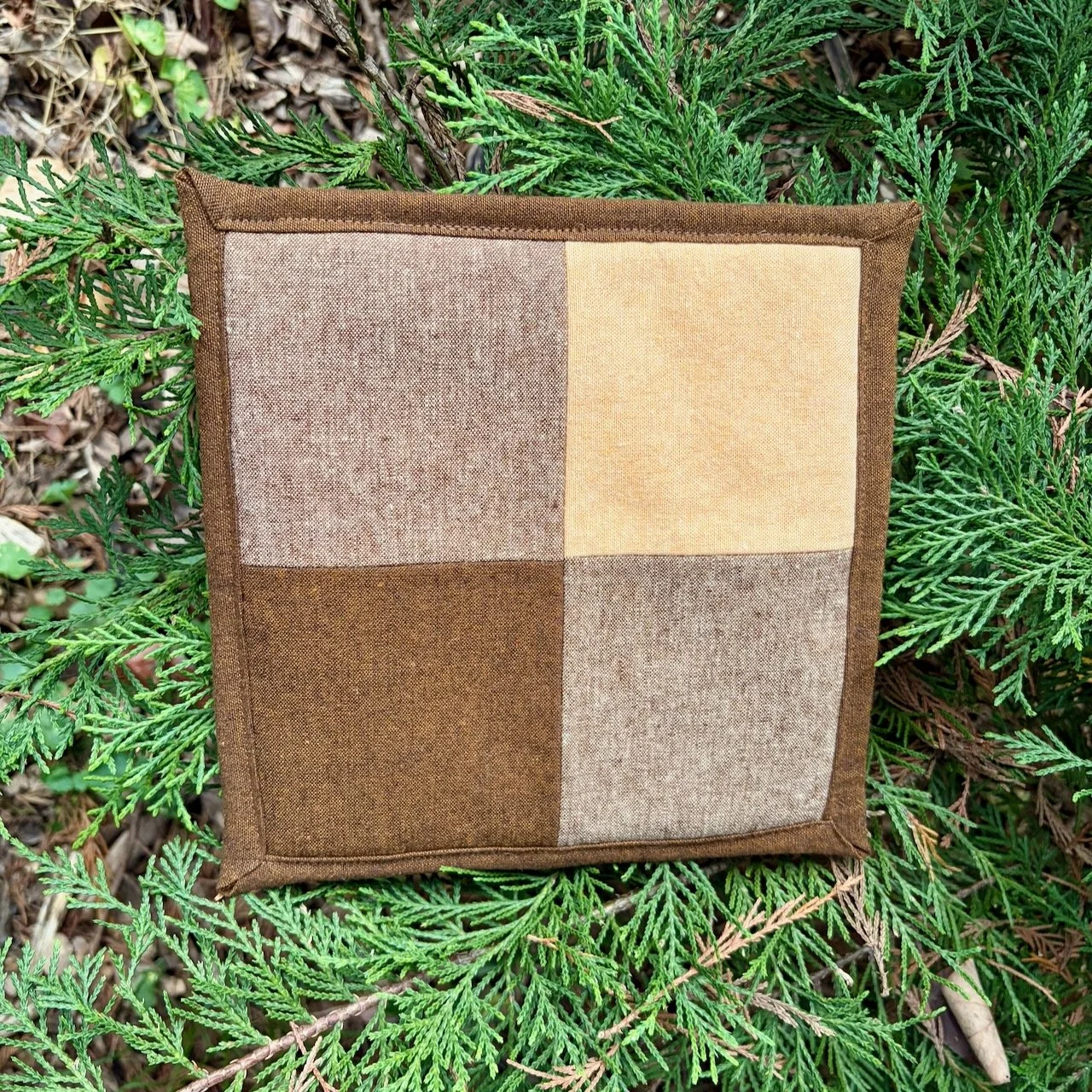 Protect your table in style with this handcrafted quilted trivet, featuring a sophisticated colorblock design. Each piece is thoughtfully constructed with premium cotton-linen blend fabrics and specially layered batting for superior heat protection.